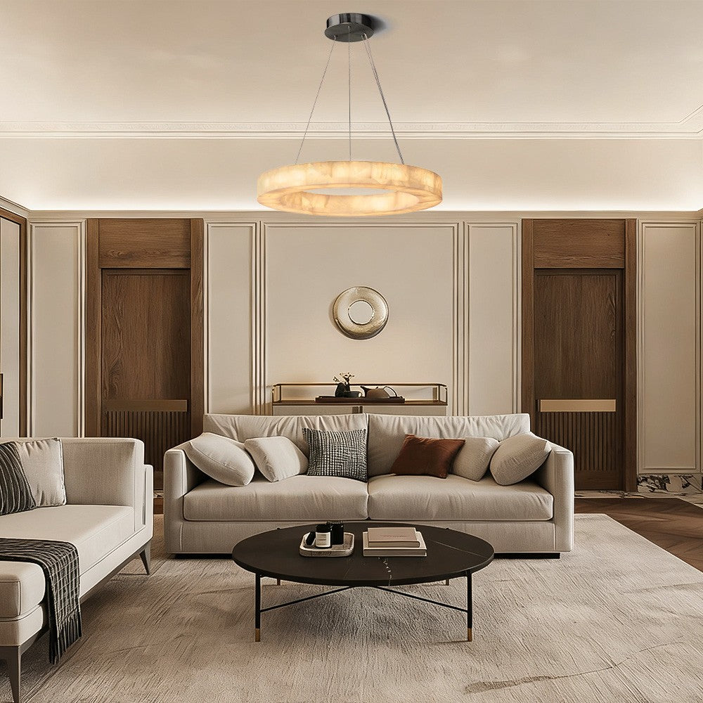 Alabaster Riven Round Chandelier 31″D