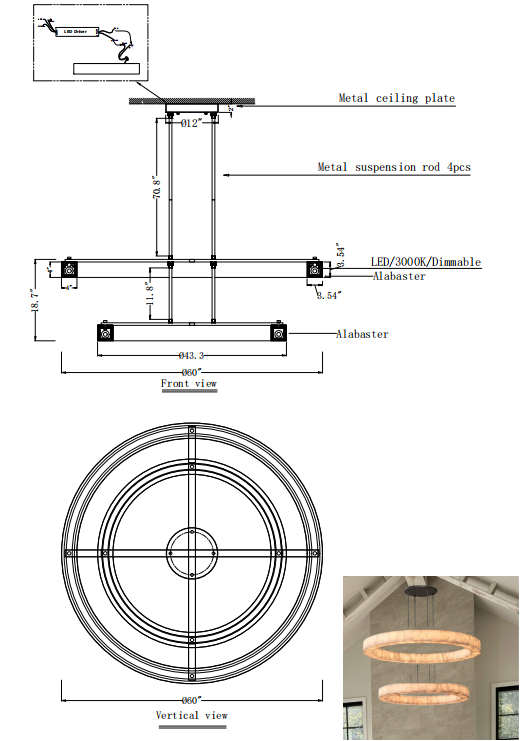 - Chandelier Body: 60" diam., 19¾"H