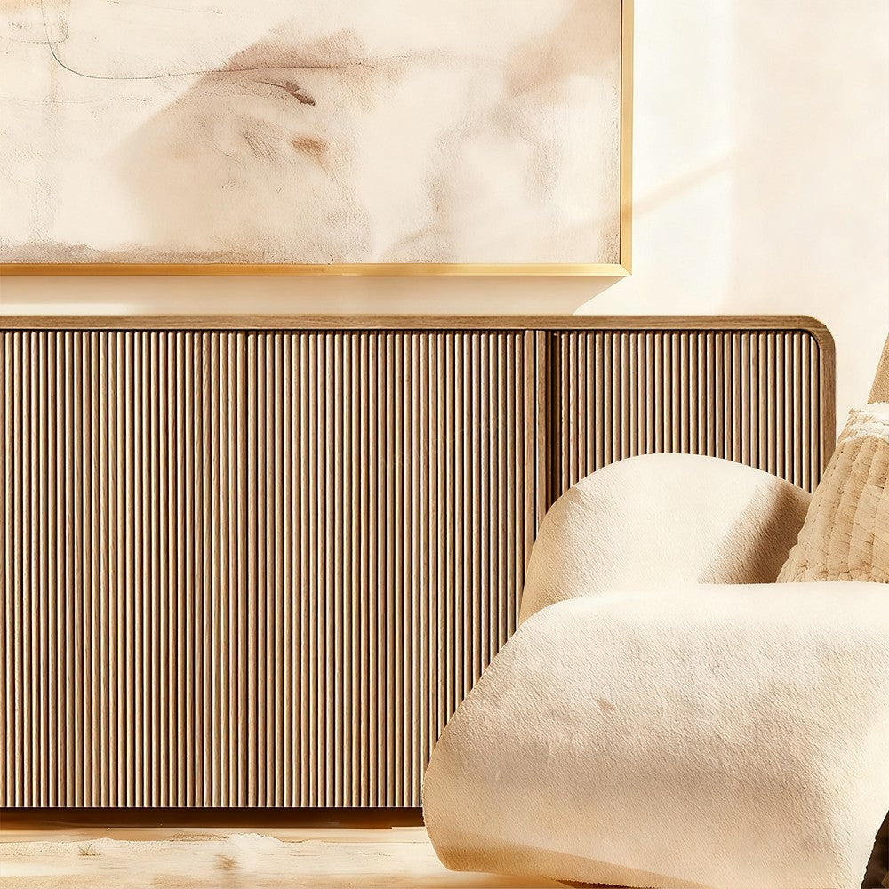 - 3 cord cutouts in back panel for wire management (1 per section); cord cutouts have wood grommets in a complementary finish