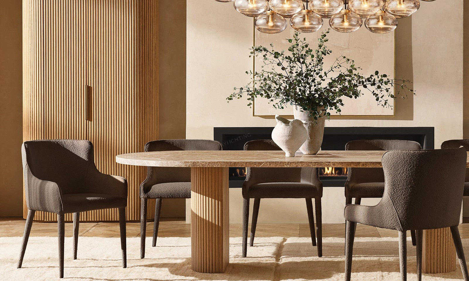 - Doors are accented with vertical reeding