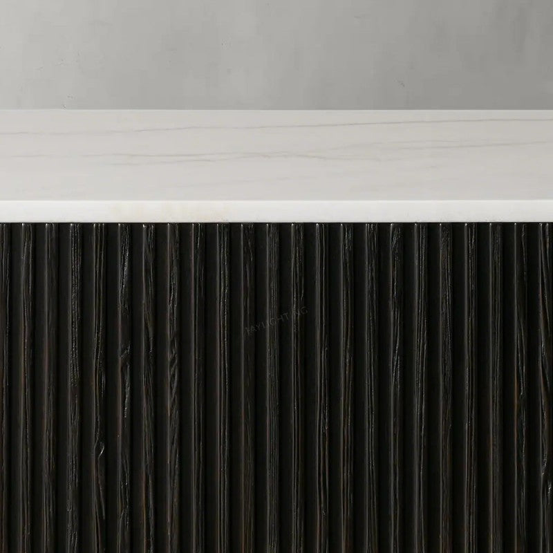 - Craftsman-built pieces feature reinforced mortise-and-tenon joinery for added strength and stability and are complemented by white marble or bluestone tops.