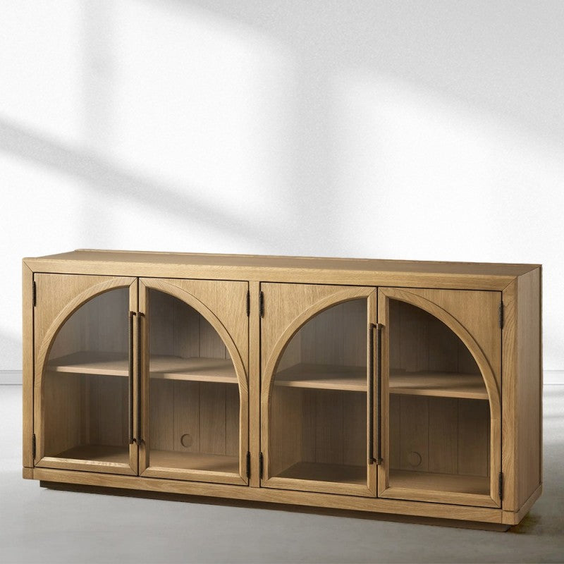 Where gentle curves meet the natural graining of oak, our artisan-crafted Heibi Collection awaits. Heibi’s generous shelves mean there’s always room to display favorite curiosities and everyday essentials.