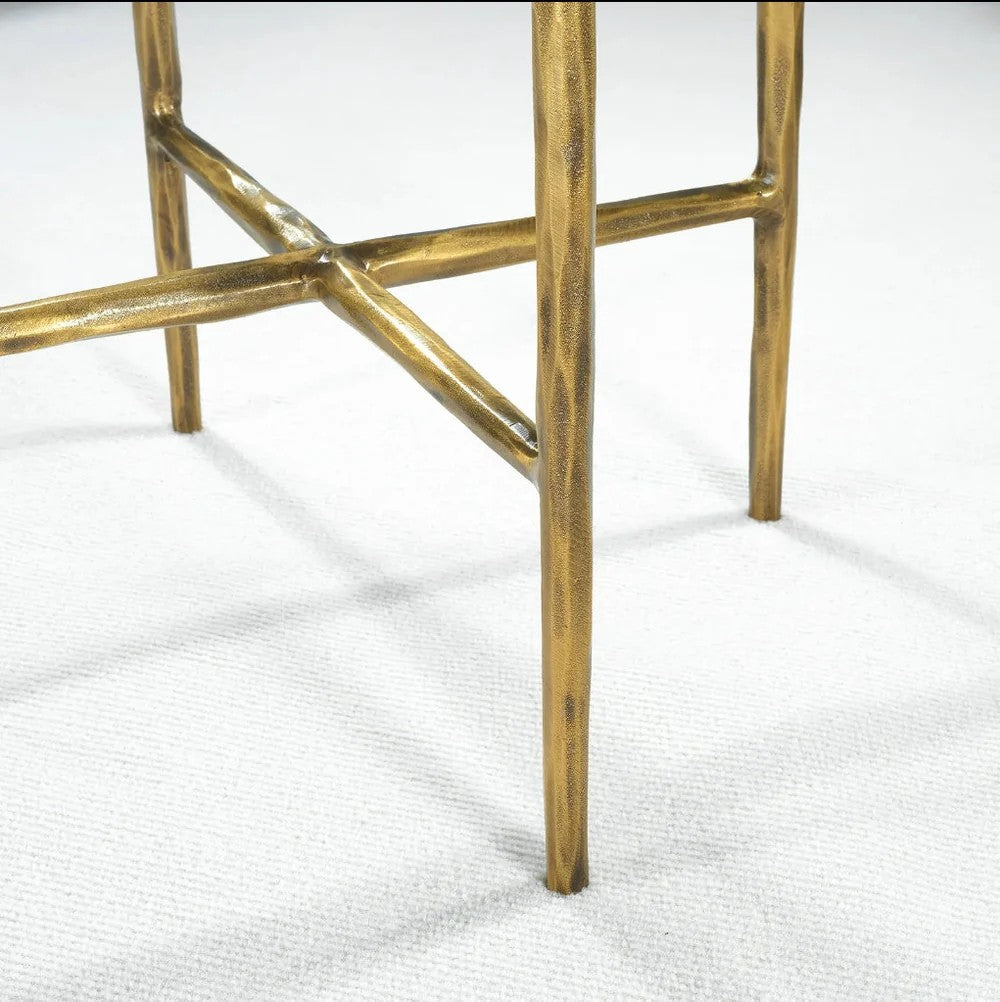 Our collection by the rustic sensibility of hand-forged metal with cool Italian Carrara marble. Employing an ancient fabrication process, artisans hand hammer the metal bars to reveal an alive, imperfect and organic texture. The pounded, tapered silhouettes are a rich counterpoint to the smooth, honed stone.