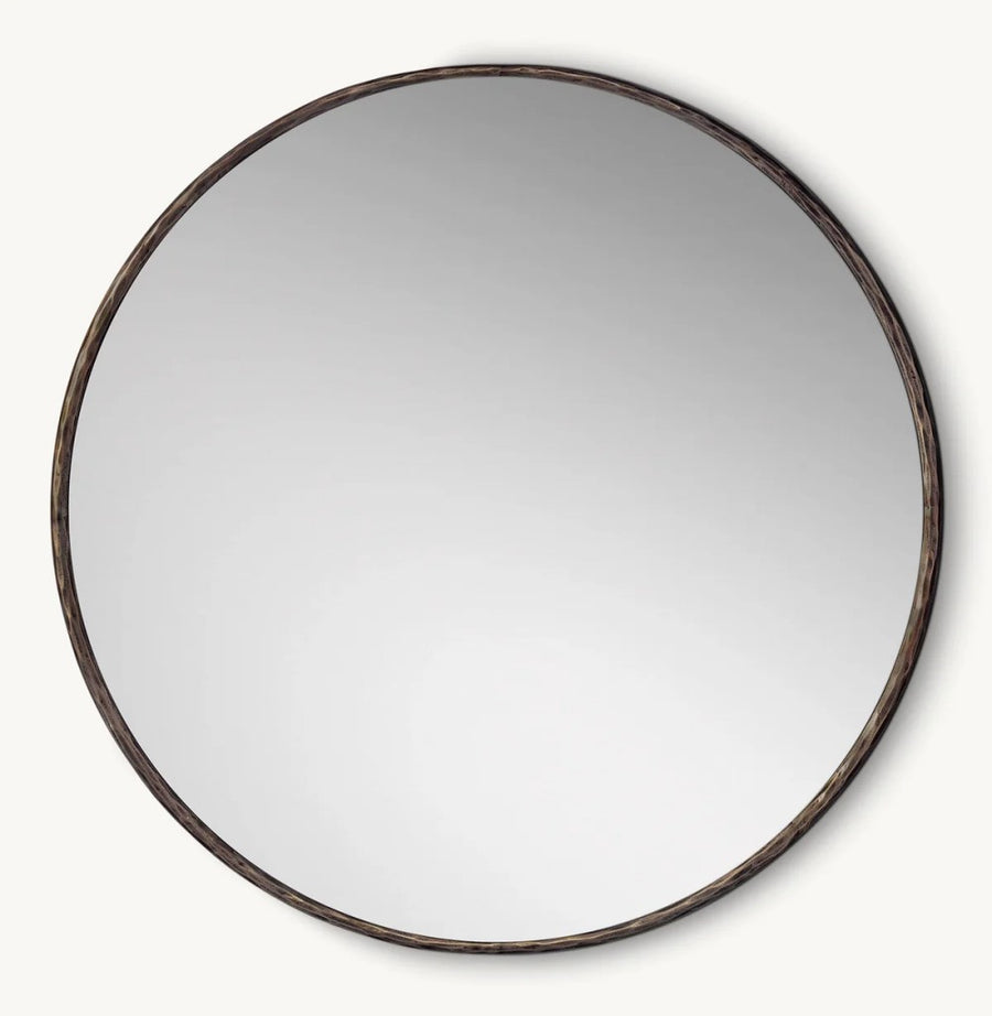 Our mirror embodies the rustic sensibility of hand-forged metal. Employing an ancient fabrication process, artisans hand hammer the metal frame to reveal an alive, imperfect and organic texture, a counterpoint to its slender, tapered silhouette.