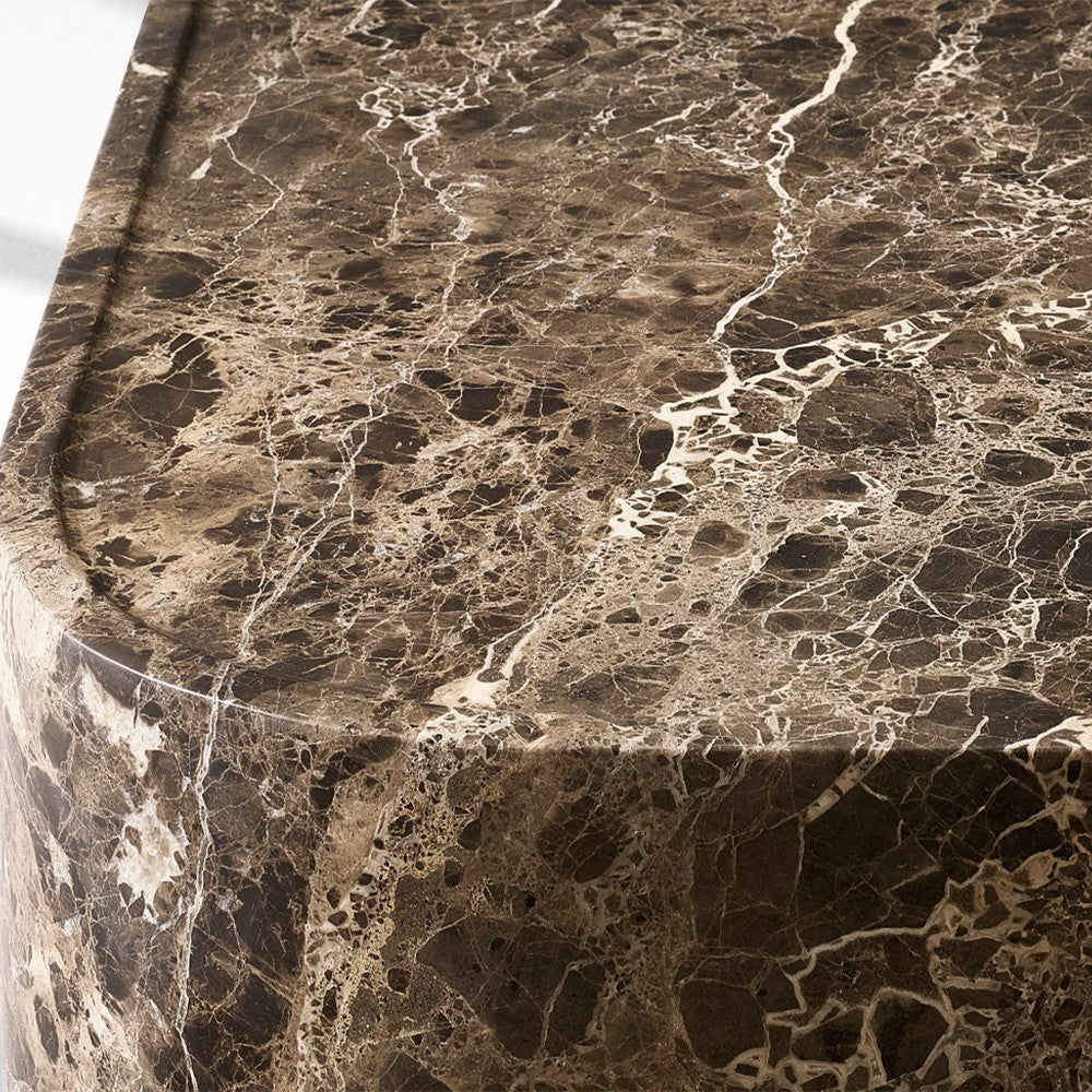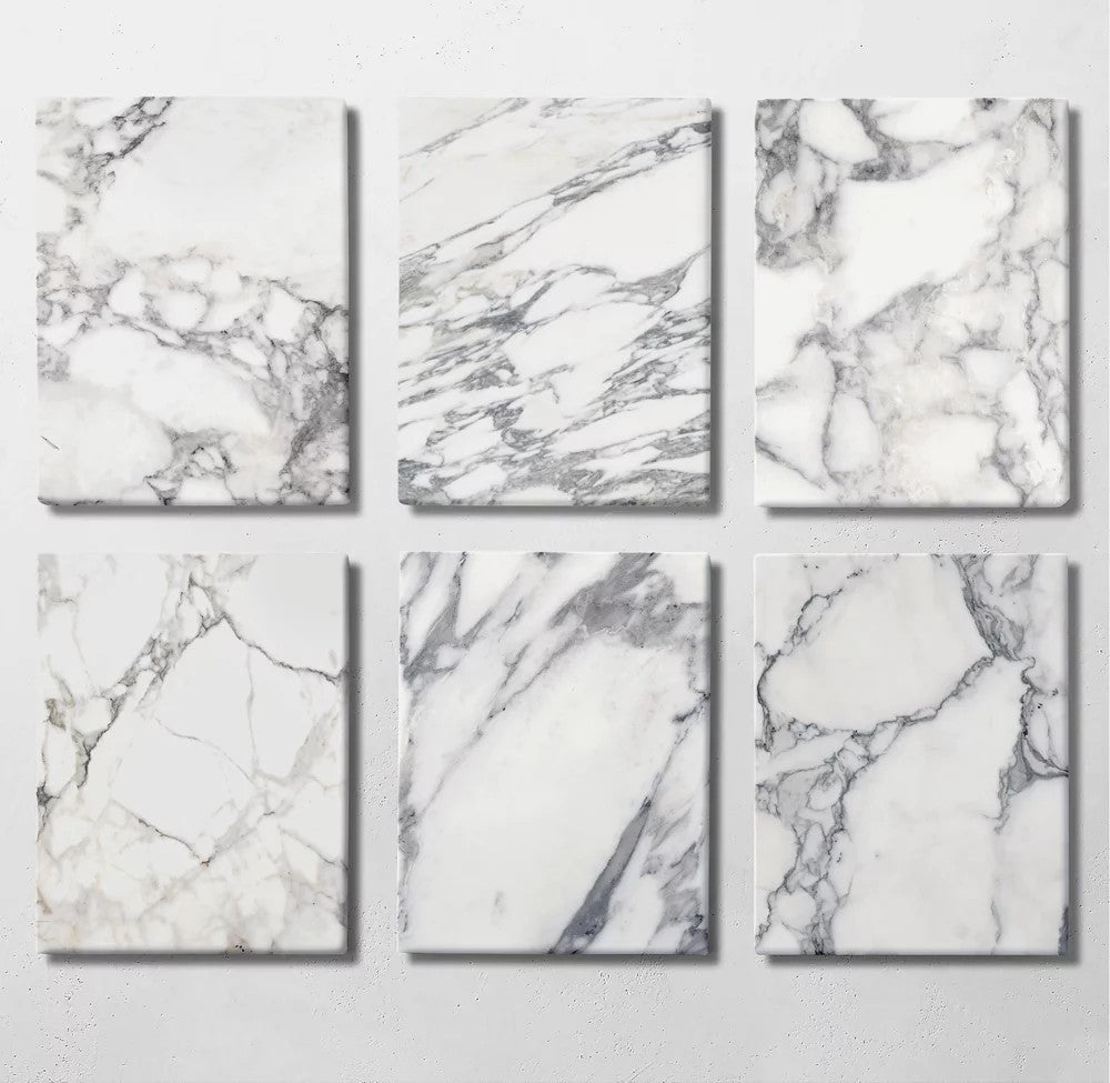 - Marble is honed and sealed for a satin finish that highlights the stone's bold vein patterning and striking contrasts