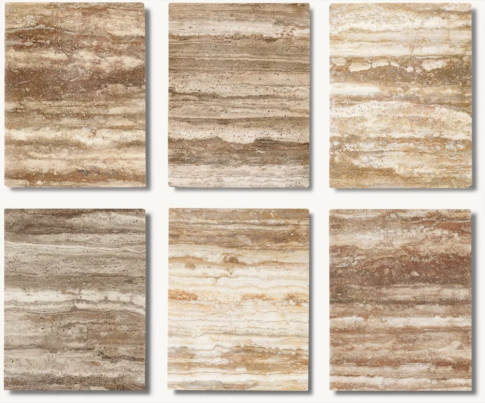 - Travertine is honed and sealed for a satin finish with visible pitting that reveals the beauty and character of each piece