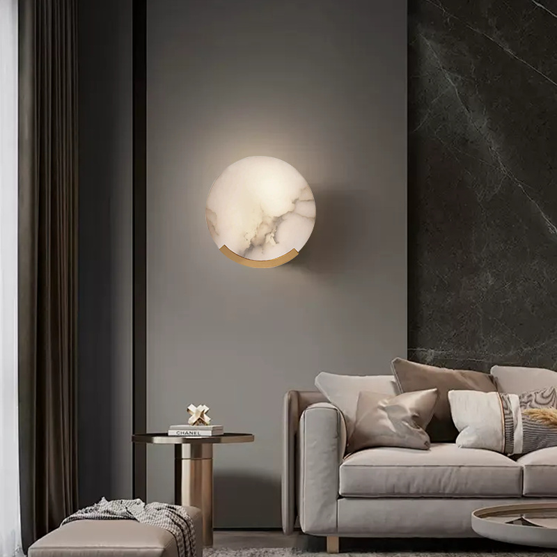 Round Alabaster Modern Living Room Sconce$368.00 USD