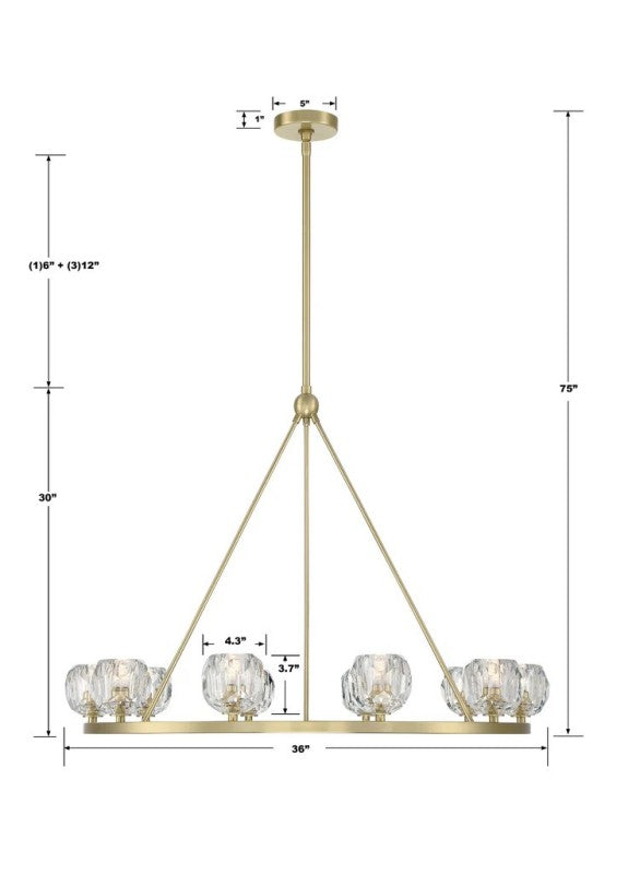• Chandelier Body:  36" D x 30" H