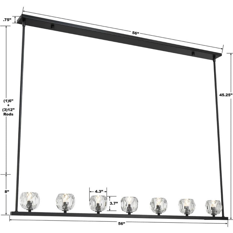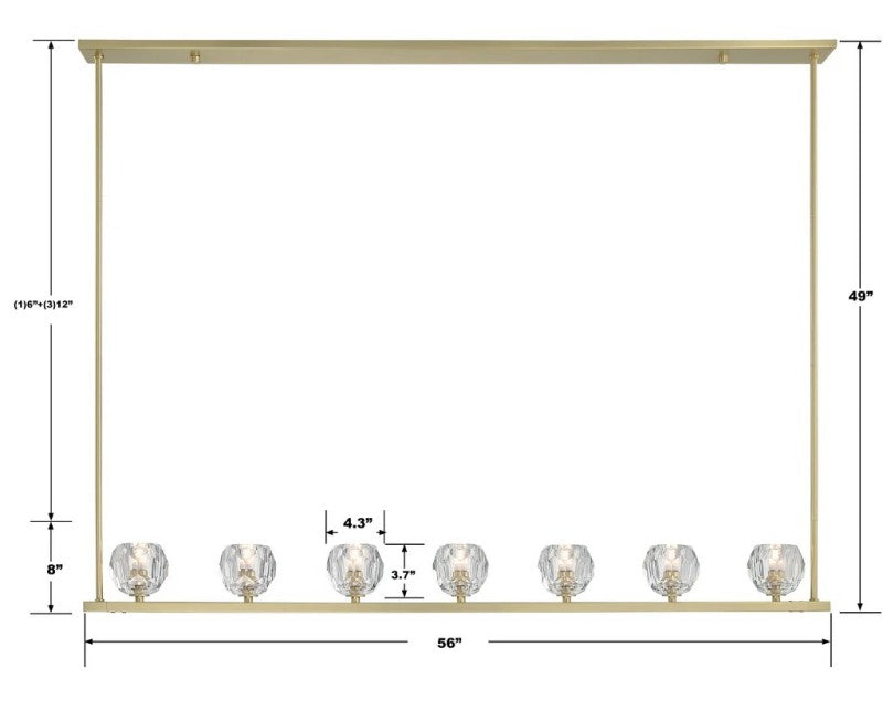 • Chandelier Body:  56"W x 10.75"H x 4.25"D