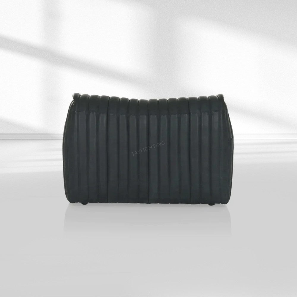 • Vintage inspired channeled design in top grain leather.|The Aspelle Channel Leather Occasional Chair is a vintage inspired design with a monolithic silhouette and narrow channel detailing. Tightly upholstered in top grain leather in either sleek black or classic tan leather. As comfortable as it is cool the Aspen Channel range is a contemporary take on a vintage 1970's vibe.