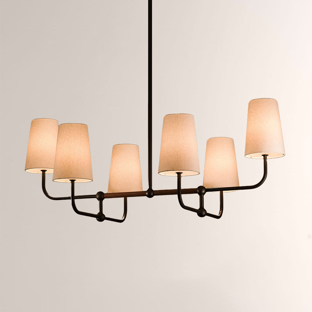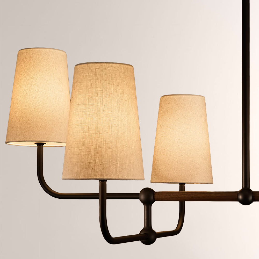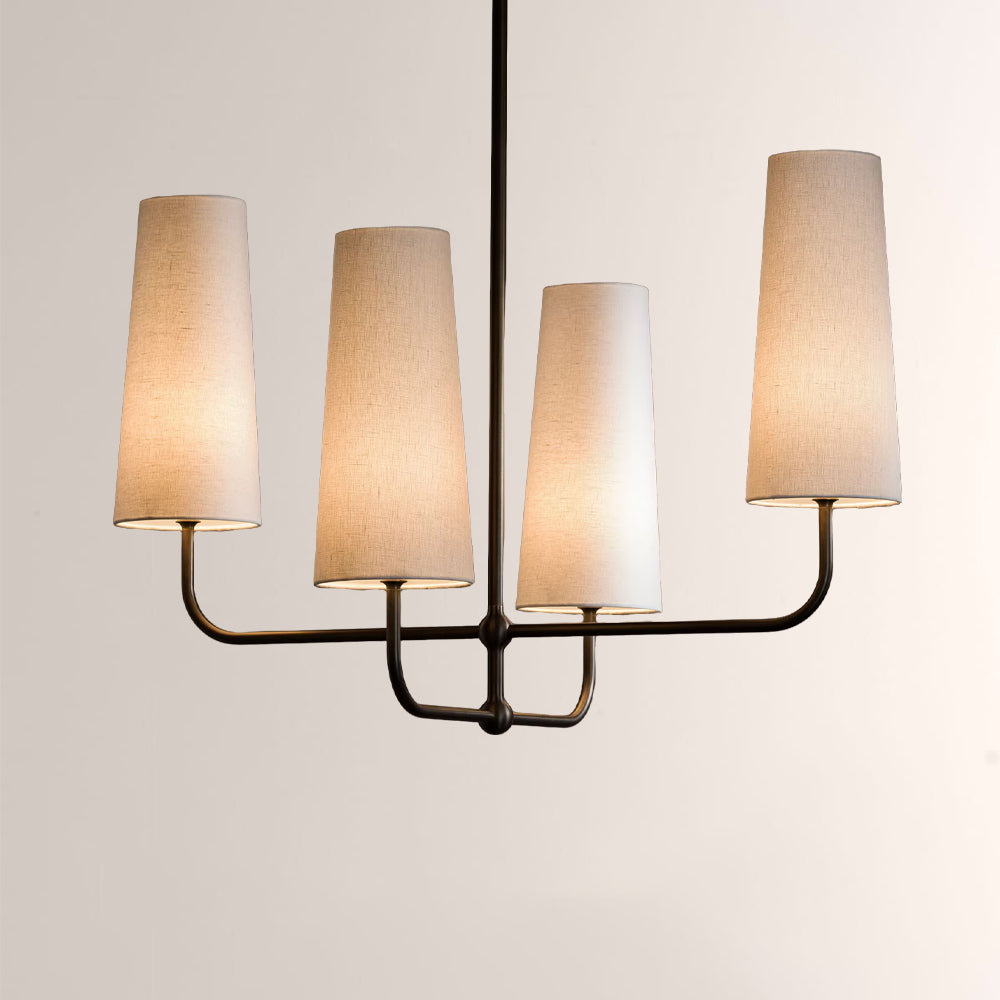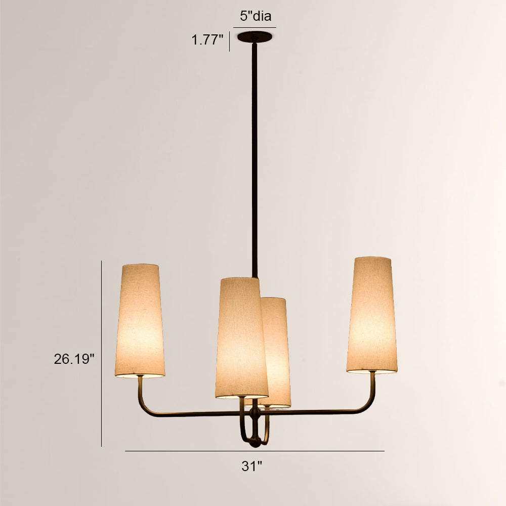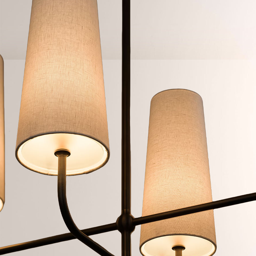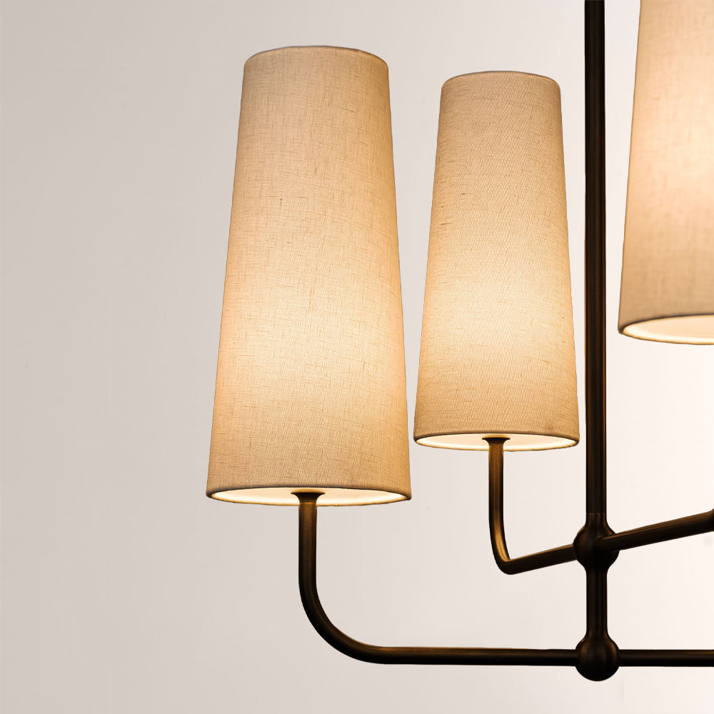 The Bolanova Multi-Arm Linen Shade Chandelier features elegant linen tapered shades paired with an antique bronze metal frame. Its symmetrical transitional design casts soft, warm diffused light—perfect for elevating American dining rooms, living rooms, or refined entryway spaces.