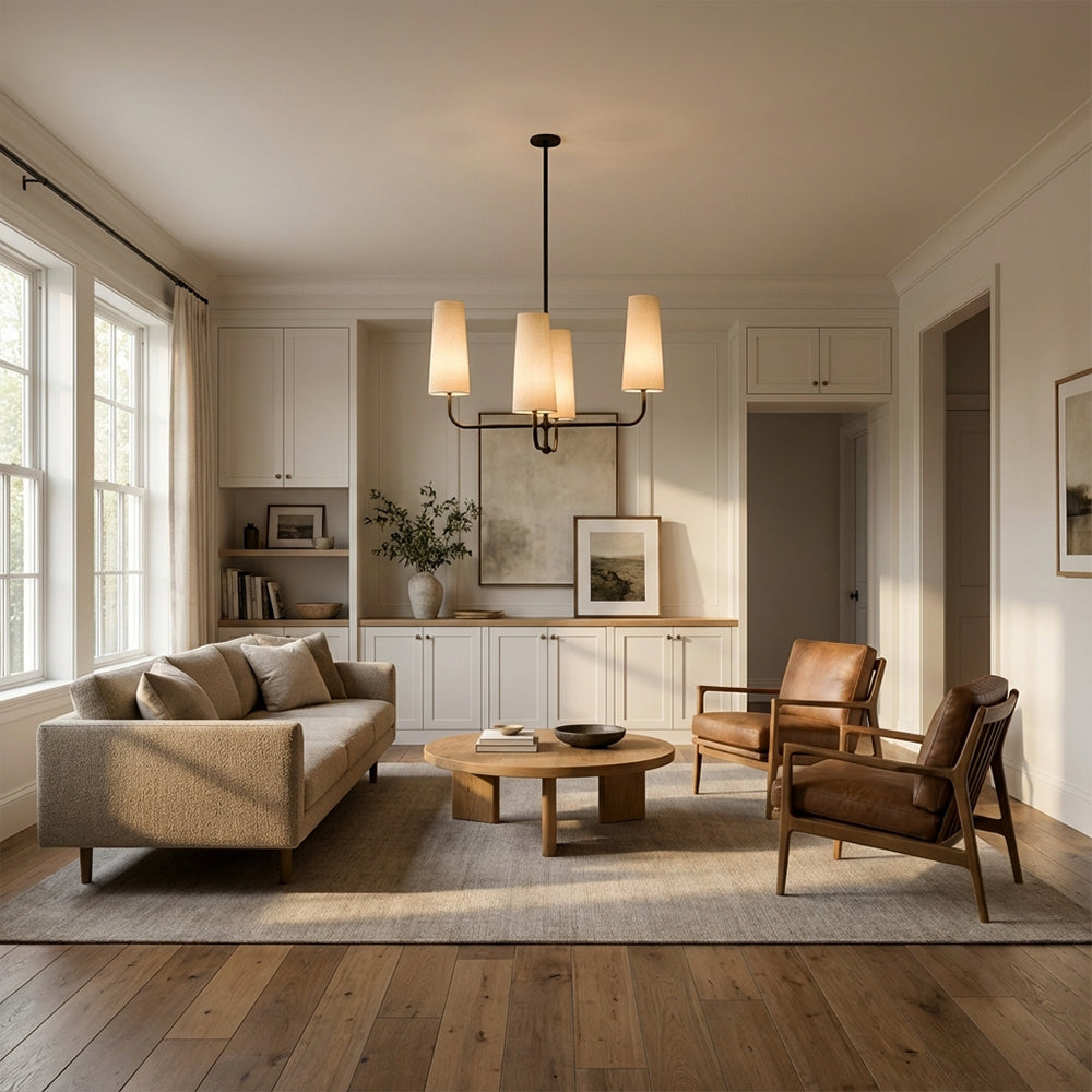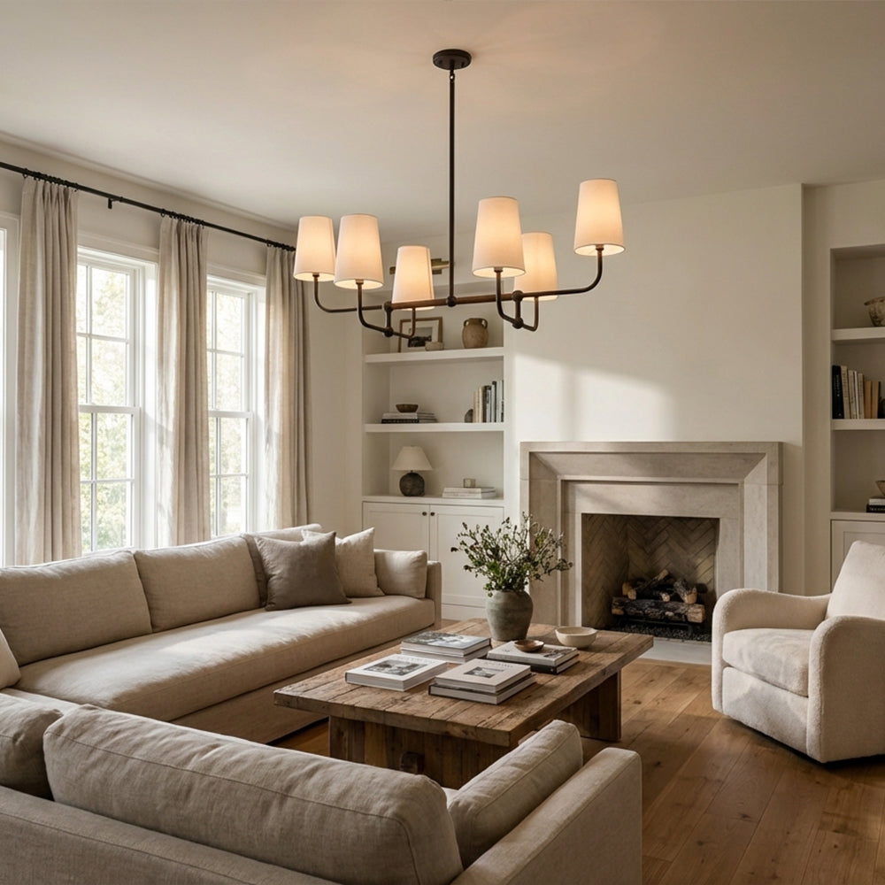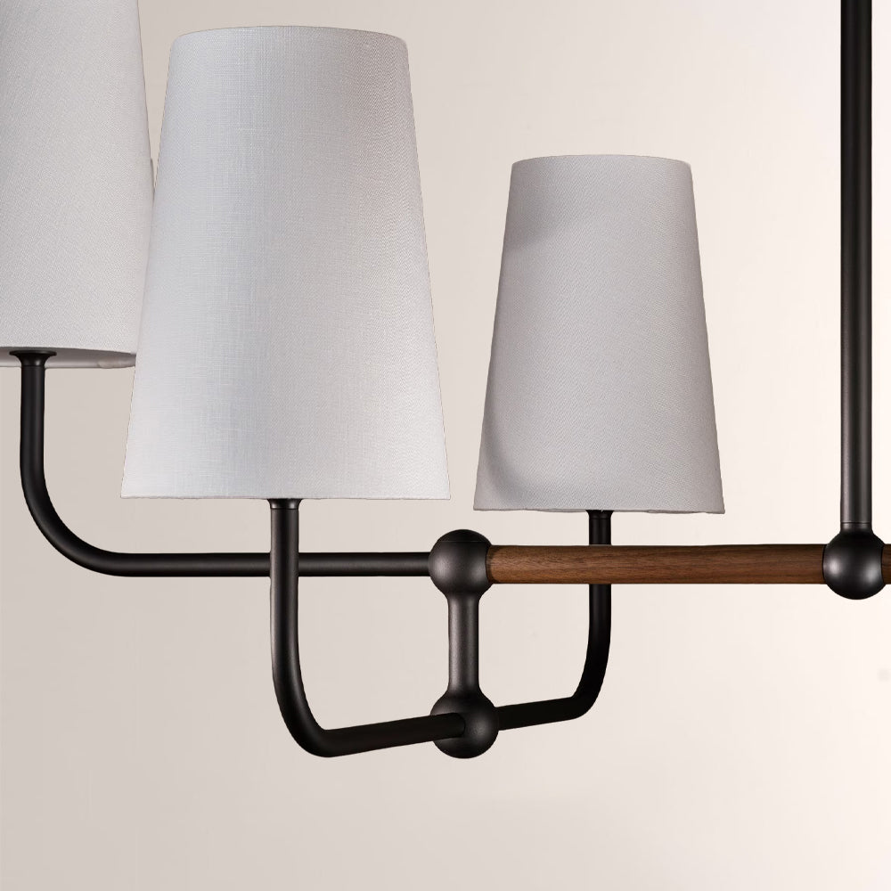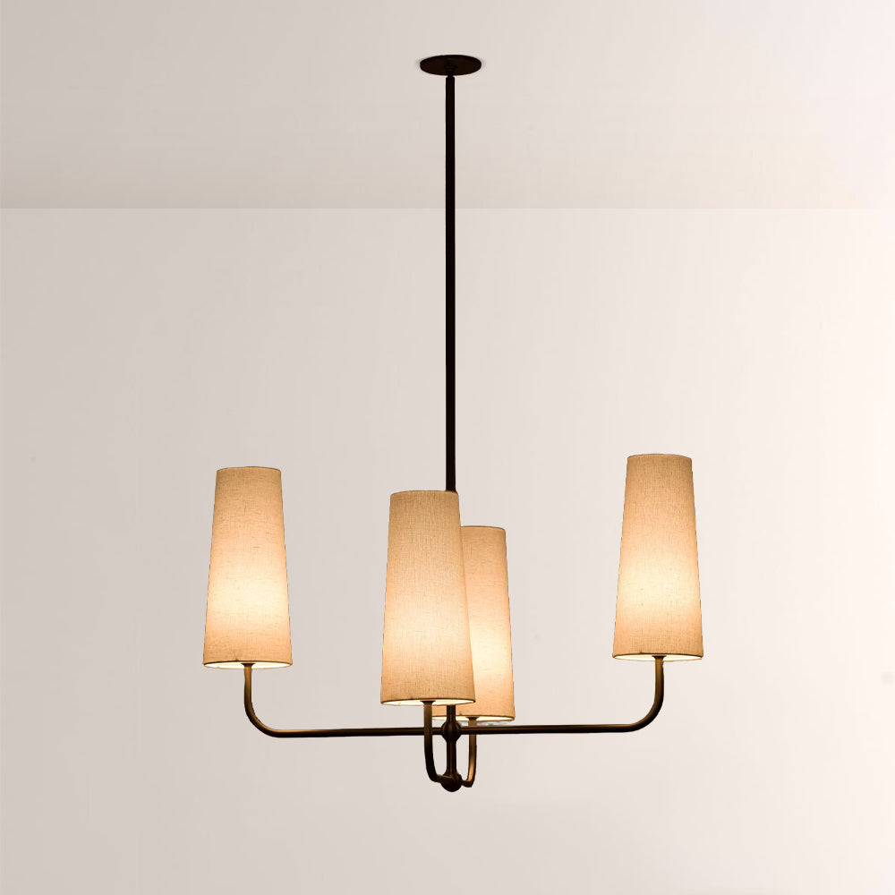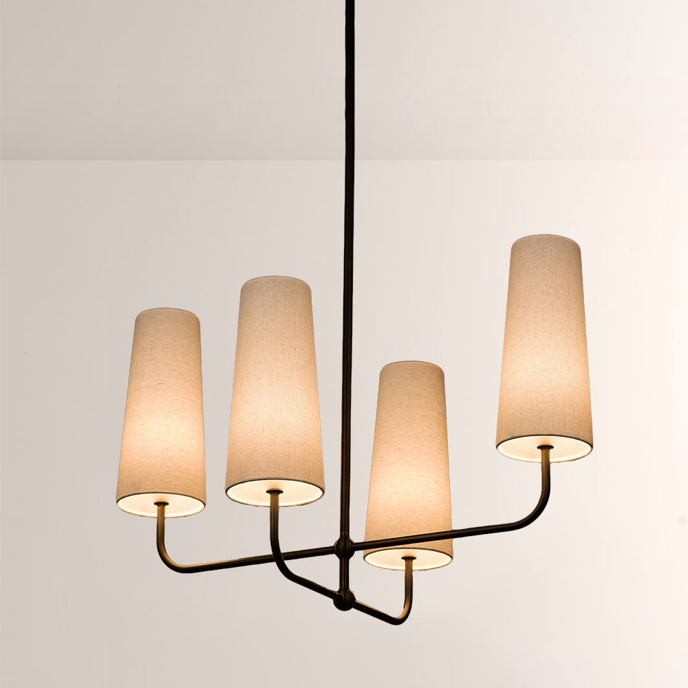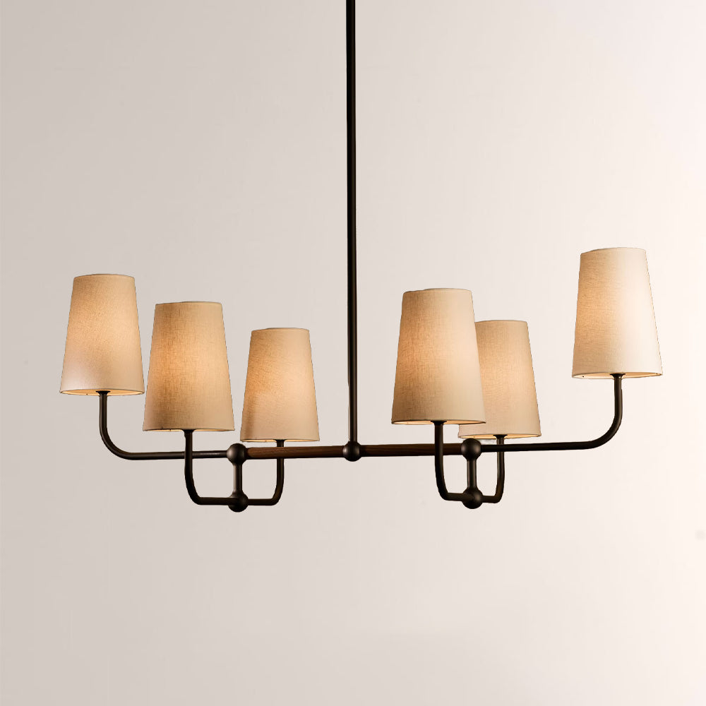 The Bolanova Multi-Arm Linen Shade Chandelier features elegant linen tapered shades paired with an antique bronze metal frame. Its symmetrical transitional design casts soft, warm diffused light—perfect for elevating American dining rooms, living rooms, or refined entryway spaces.