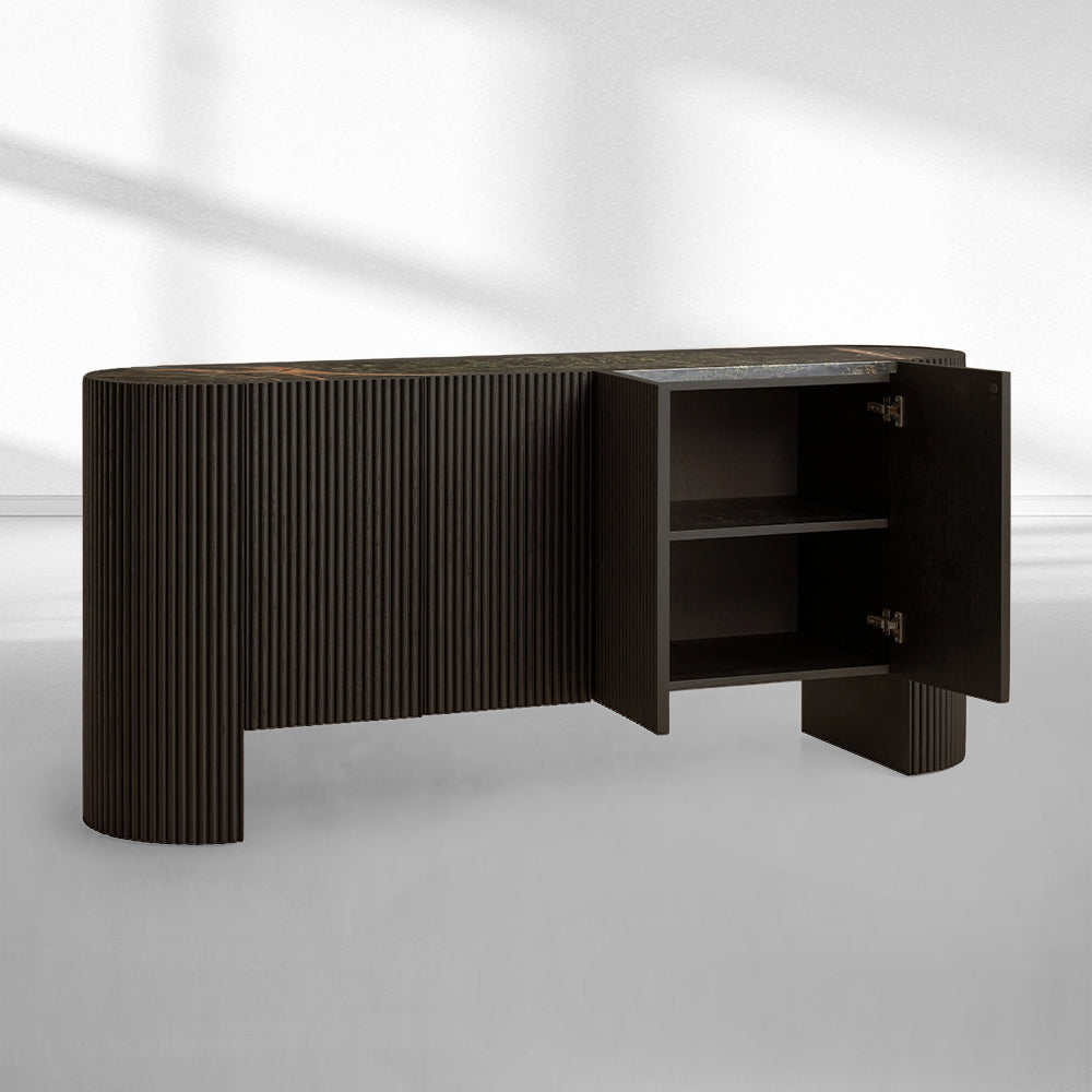 The Floregal- series sideboard features a textured wood base (available in multiple tones) paired with a marble top, blending modern design and regal sophistication. It’s a perfect choice for luxury American dining rooms or living spaces, offering stylish storage with a refined, statement - making look.