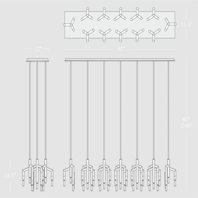 • Chandelier Body: 60 W x 15.5 D x 60 OAH*