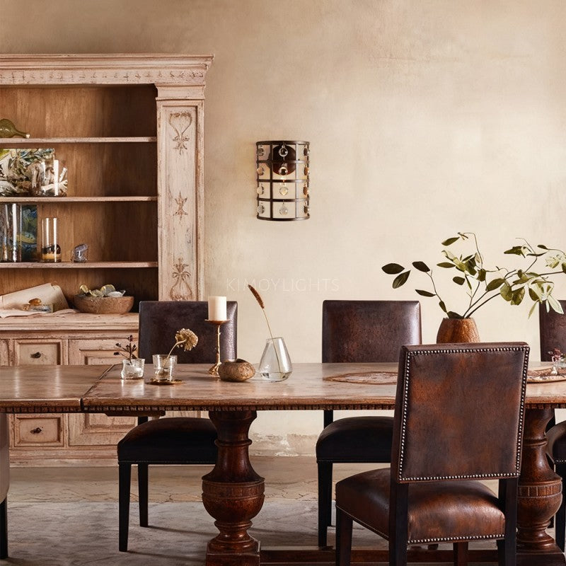 Industrial chic meets modern flair in this eye-catching wall sconce. Crafted in Italy, this fixture’s iron cage frame with antiqued patina is inspired by vintage factory lighting. Glass crystal spheres add unexpected glamour.