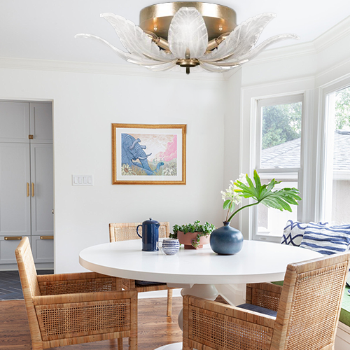 Lily Round Ceiling Flushmount 28"D is  crafted of metal and glass , the sculptural fixture is a testament to our passion for lux materials and superior craftsmanship. Evoking the minimalist spirit of 1960's design, each finely faceted sphere is ground and polished by hand to reflect and refract the light.
