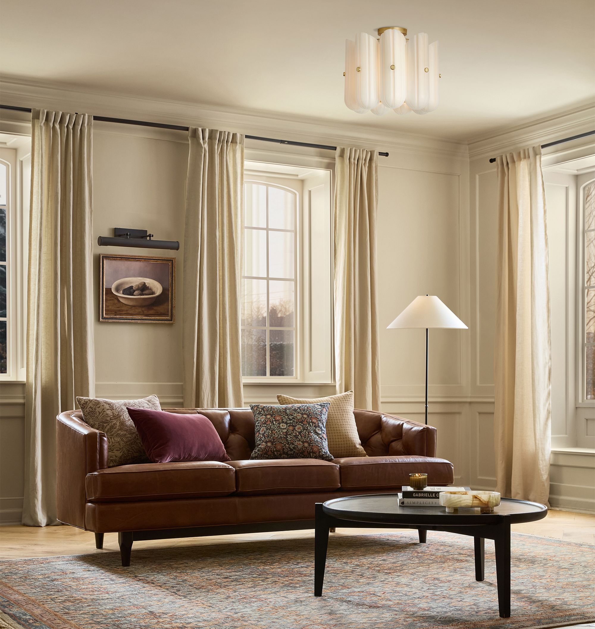 With a nod to the refined glamour of the Art Deco era, the Lorna Flush Mount transforms ceiling lighting into a sculptural centerpiece. Crafted with precision, each radial-fluted shade is made from hand-blown glass, elegantly diffusing the integrated LED light into a warm, ambient glow.