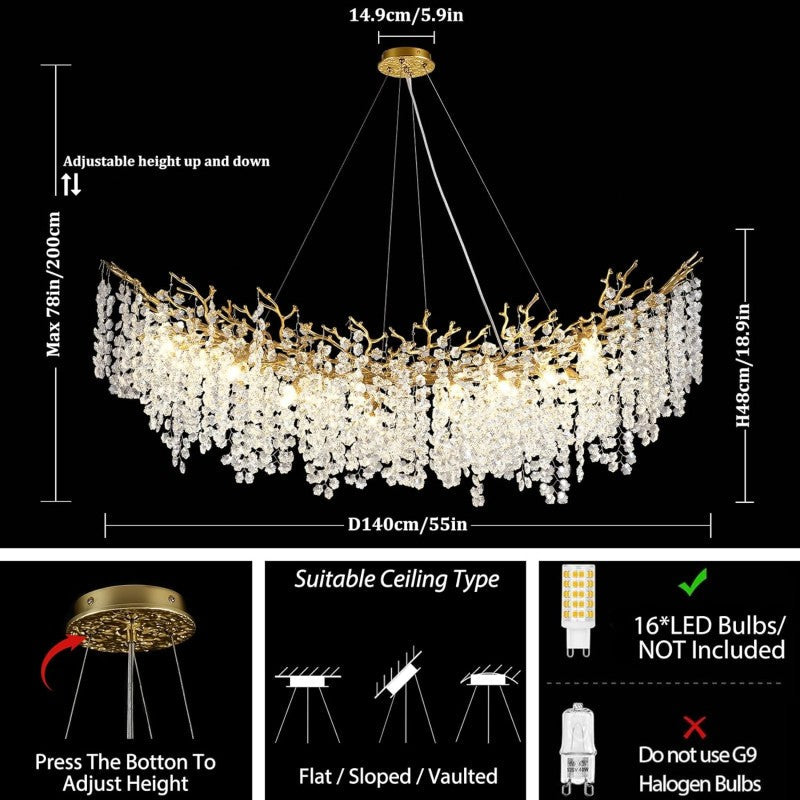 Modern Tree Branch Crystal Chandelier 55"L 30"D 40"D