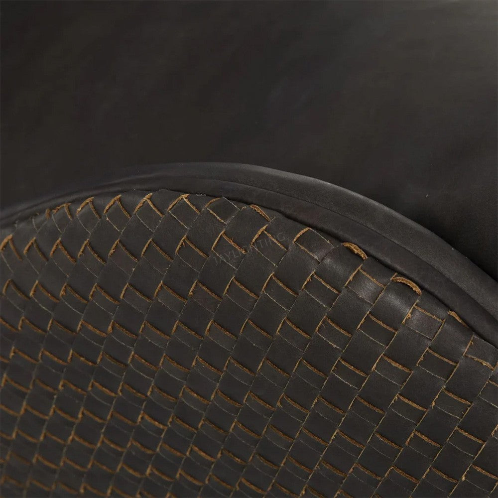 • A full aniline wax pull-up leather. Finished furniture is buffed without any protection to give an aged look to certain parts of the piece.
