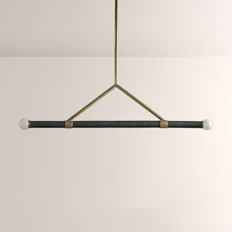 Iconic modern design with a mixed-material twist—Randan features a stunning burnished brass finish complemented by your choice of brown or black leather detailing. Two globe bulbs complete Randall’s charming modern appeal and disperse light at every angle.