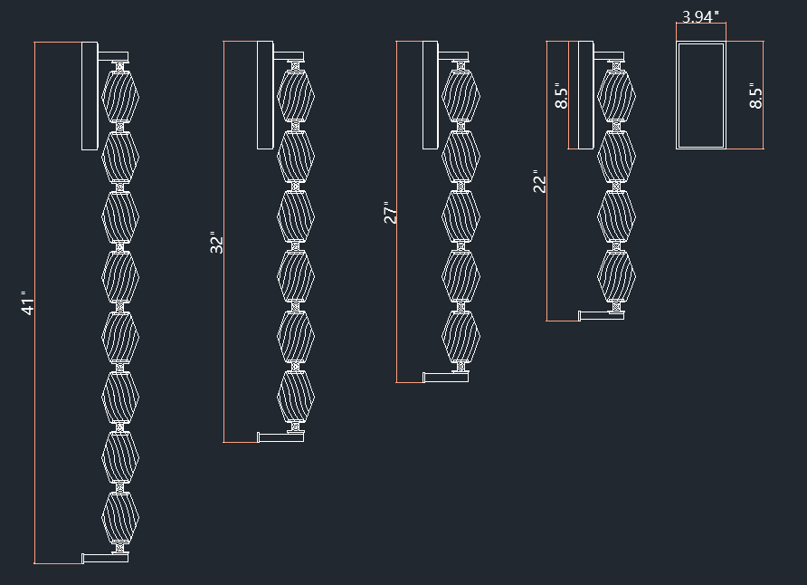 • Overall: 3.94 W x 41" H